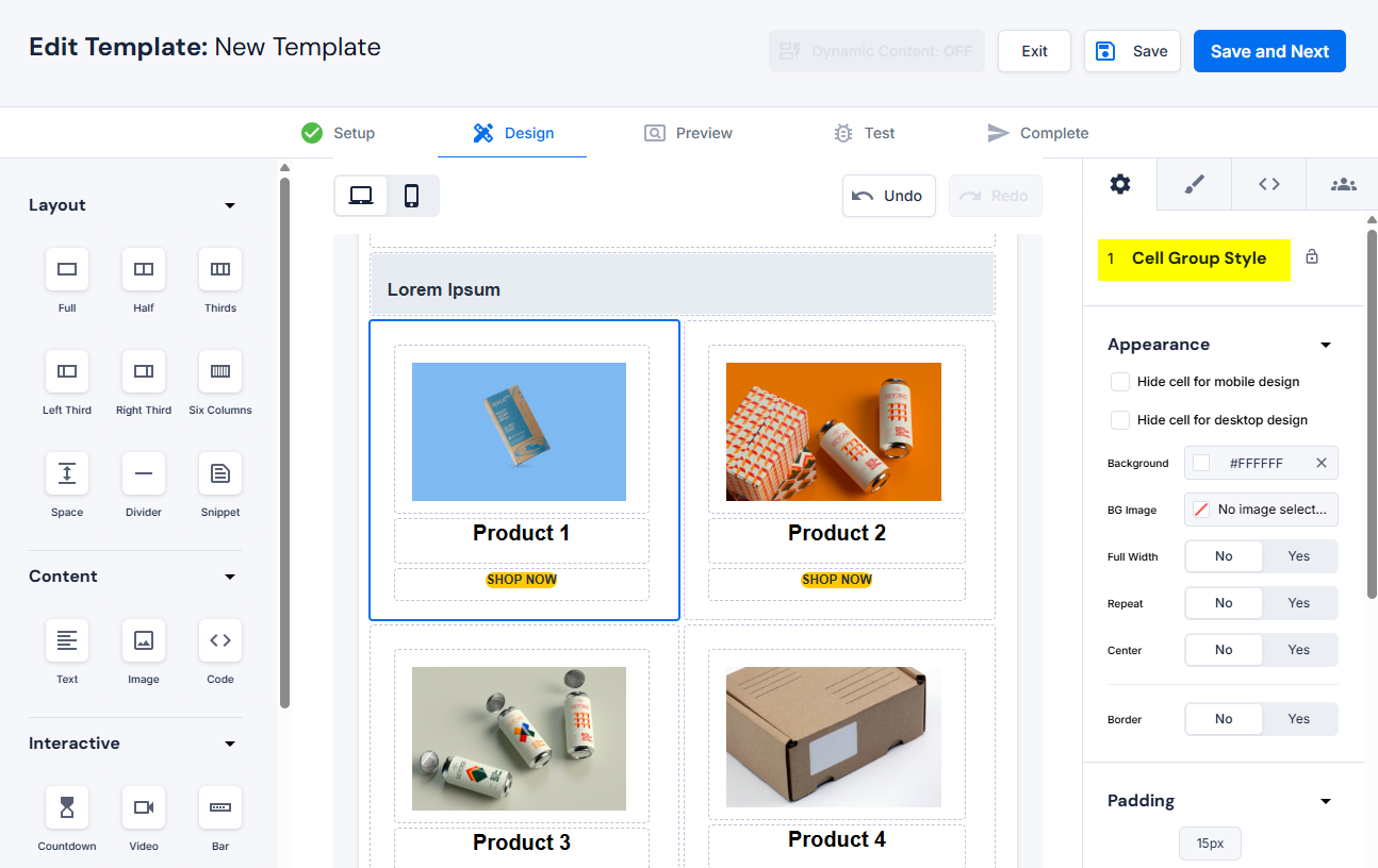 - Check that your email templates do not use Legacy Cell Groups. Any sections that use these have to be recreated using the Air designer. If you're not sure if Cell Groups are present in your design, open your email template, then click on each cell to see if "Cell Group Style" appears on the right:
