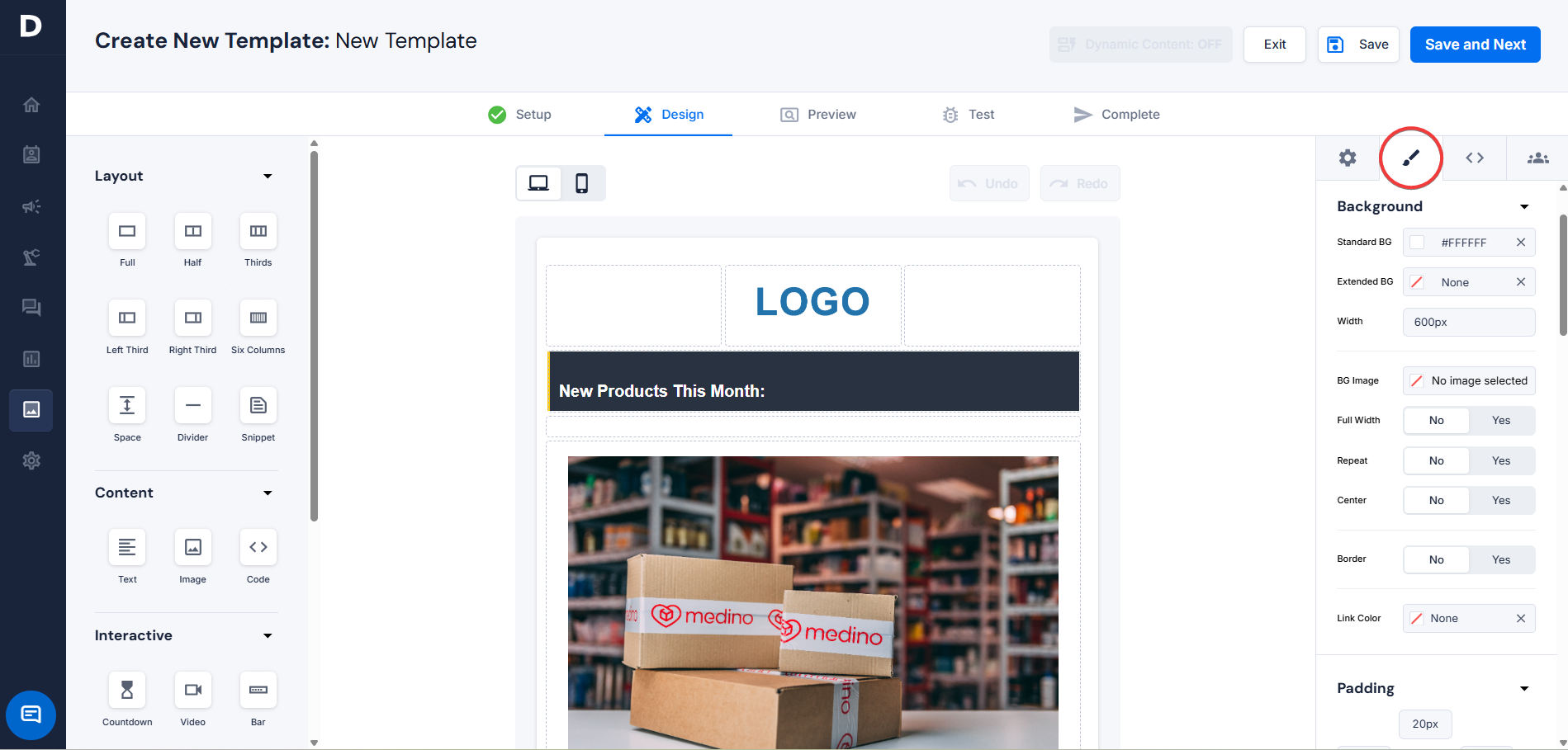 Verify that the Style tab is set up properly for your email templates, before editing individual cell styles to make them appear the way you want. This will ensure consistent formatting throughout the email. You'll find these settings by opening your email template in the drag-and-drop designer in Air, then clicking the Style tab in the top-right corner of your editor: