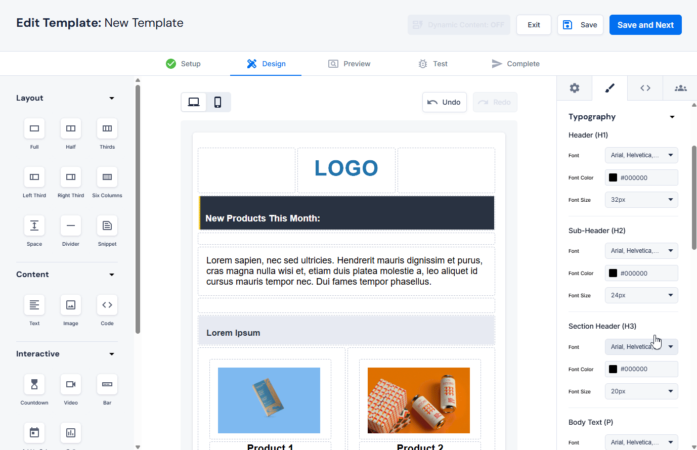 - Consistent text formatting is especially important in text-heavy emails. Set up the font, size, and color for the Header, Sub-header, Section header, and body text in the Style tab. Saving this formatting in the Style tab of your email template instead of editing individual text cells will ensure consistency.