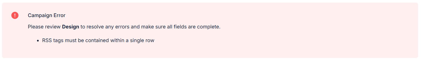 The RSS Campaign is special in that the RSS layout row will automatically duplicate itself in order to display each of your posts. For that reason, only 1 layout row can contain RSS placeholder data. An RSS campaign cannot be sent if more than a single row contains RSS information, and warnings will be displayed on the Preview, Test, and Schedule steps of the campaign.